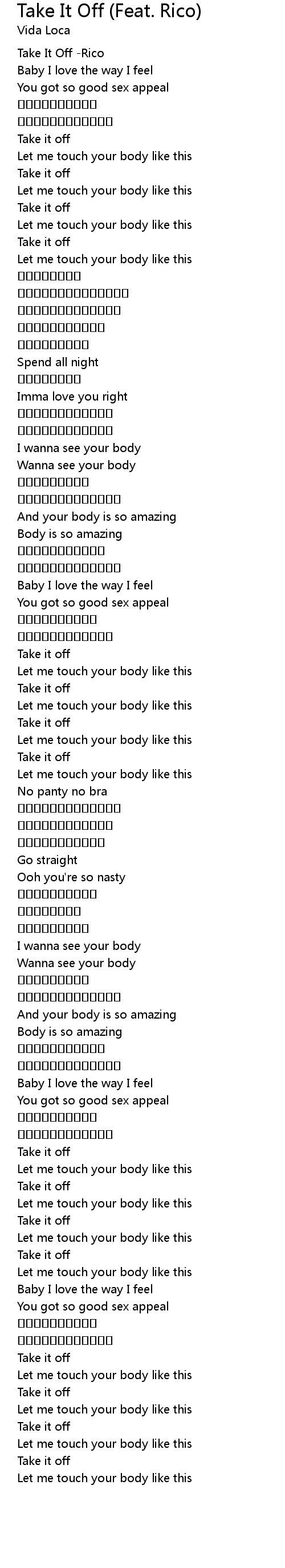 | [00:00.308] | Take It Off Rico |