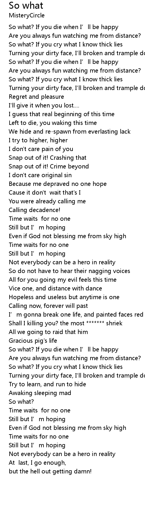 | [00:18.940] | So what? If you die when I’ll be happy |