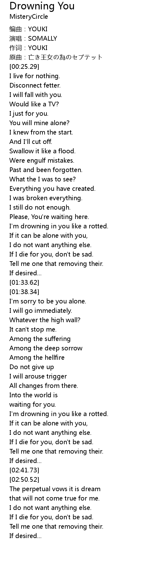 | [02:16.20] | I' m drowning in you like a rotted. |