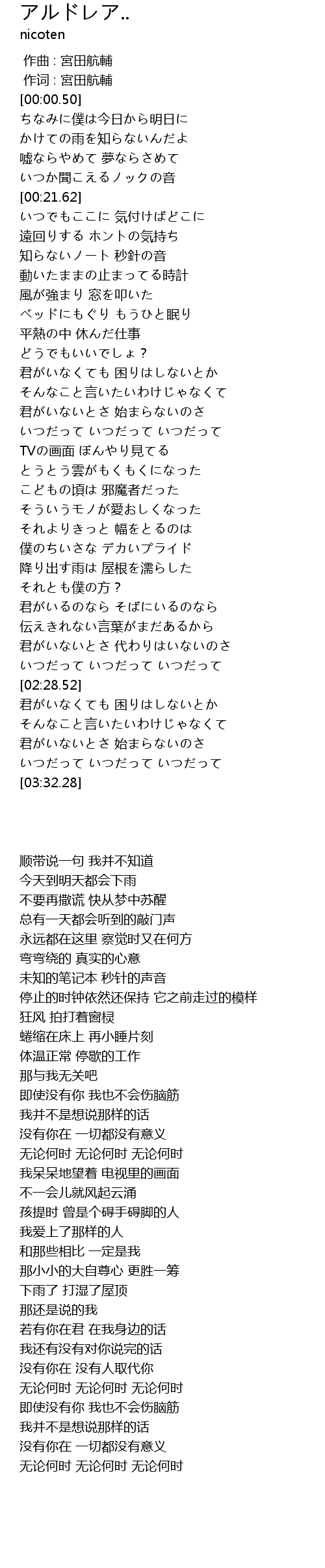 | [00:00.16] | 作词 : 宮田航輔 |