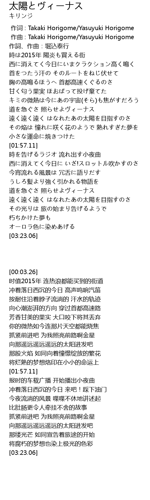| [00:00.000] | zuò cí : Takaki Horigome Yasuyuki Horigome |