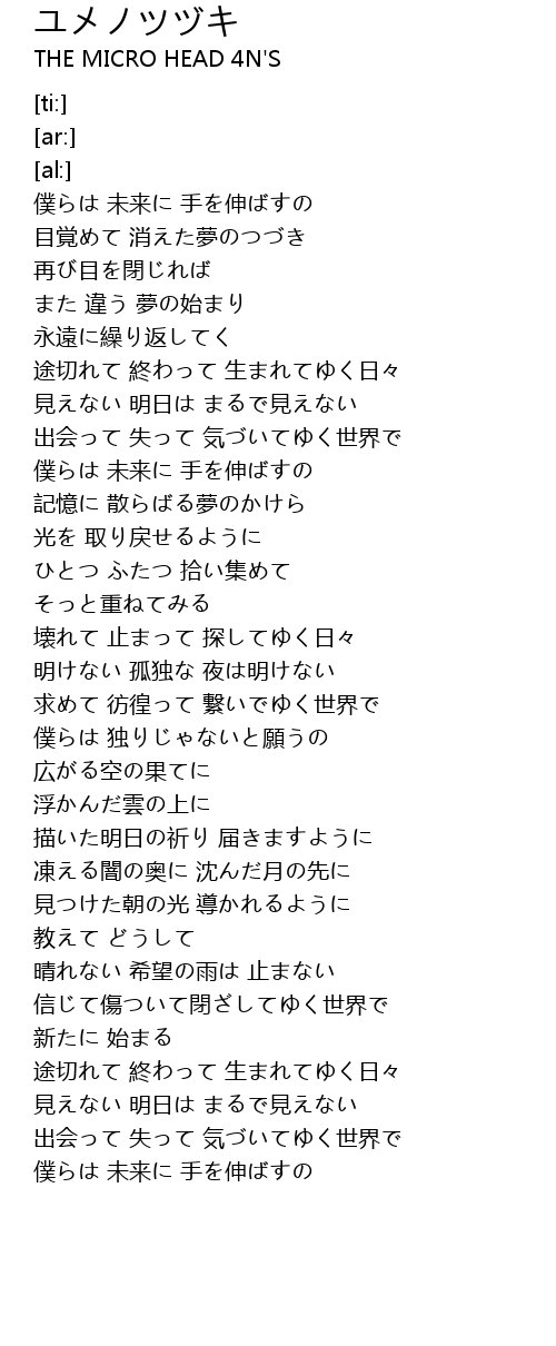 | [04:12.43] | 僕らは 未来に 手を伸ばすの |