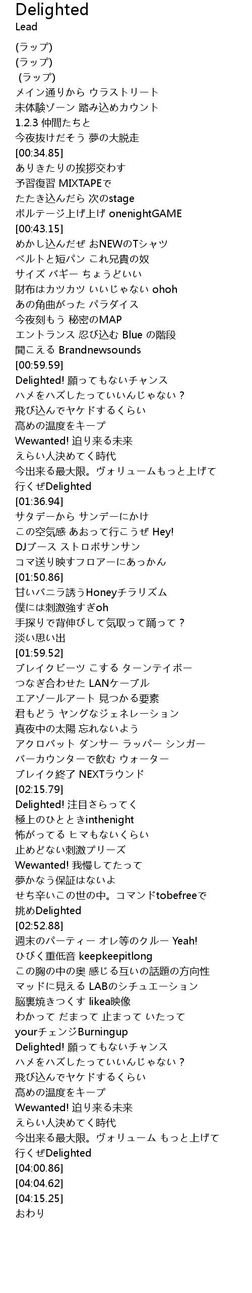 | [00:59.89] | Delighted! 願ってもないチャンス |