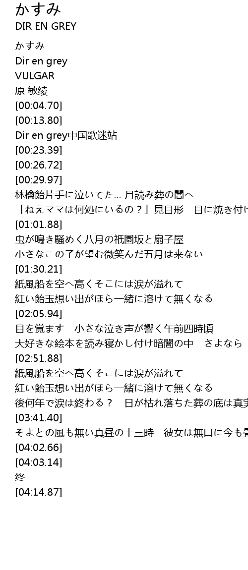 | [00:16.81] | Dir en grey中国歌迷站 |
