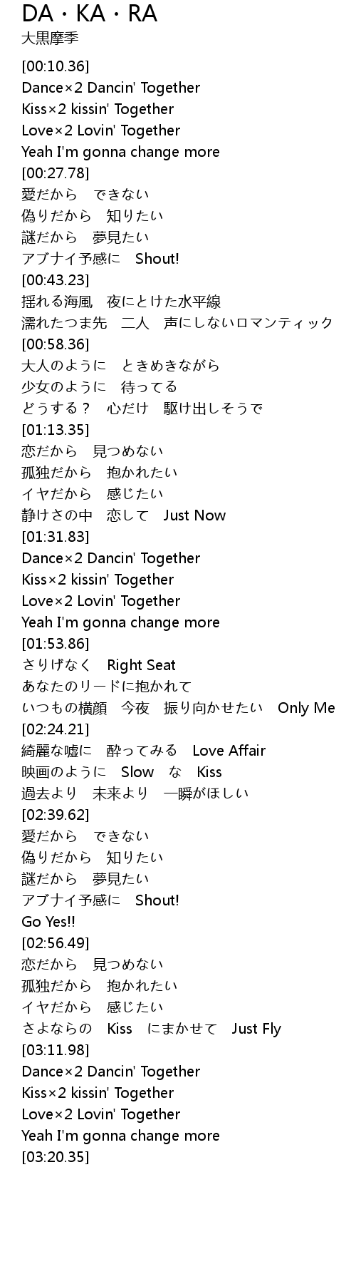 | [03:12.35] | Dance×2 Dancin' Together |