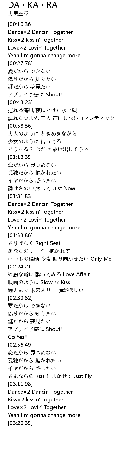 | [02:25.44] | 綺麗な嘘に 酔ってみる Love Affair |