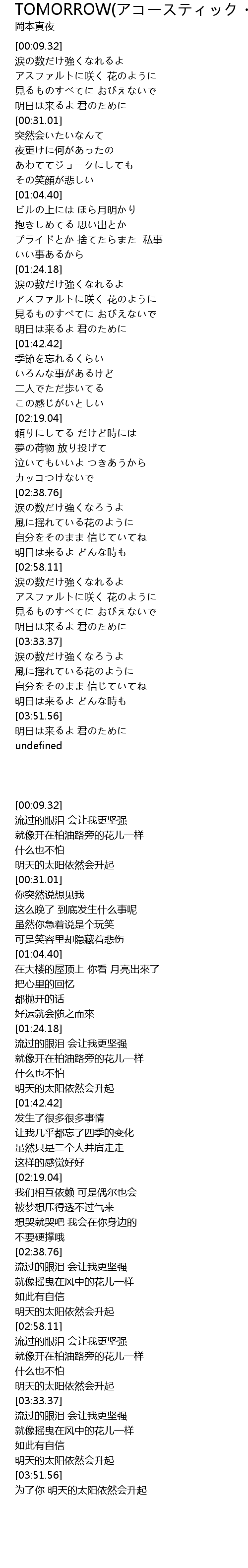 | [03:20.04] | アスファルトに咲く 花のように |