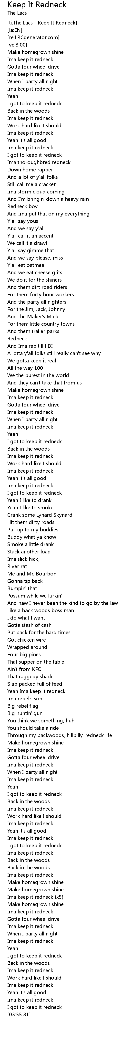 [ti:The Lacs - Keep It Redneck] |