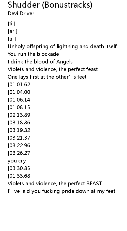 | [03:35.59][03:21.37][02:21.00][01:20.14] | Shudder to think |