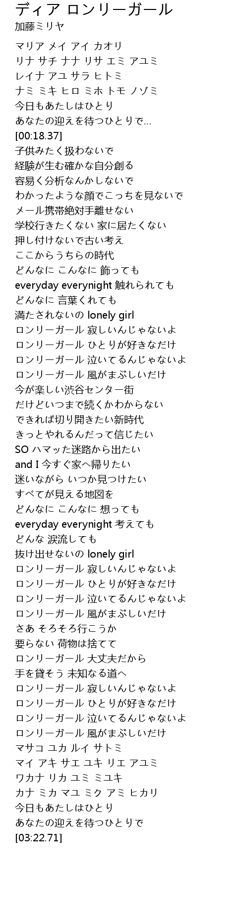 | [01:08.61] | ロンリーガール ひとりが好きなだけ |