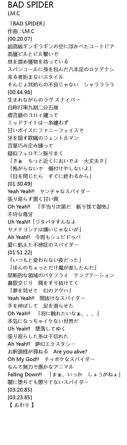 | [03:10.55] | Oh My God!! チッポケなスパイダー |