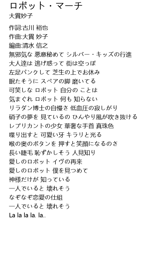 | [00:45.521] | 可笑しな ロボット 自分の ことは |