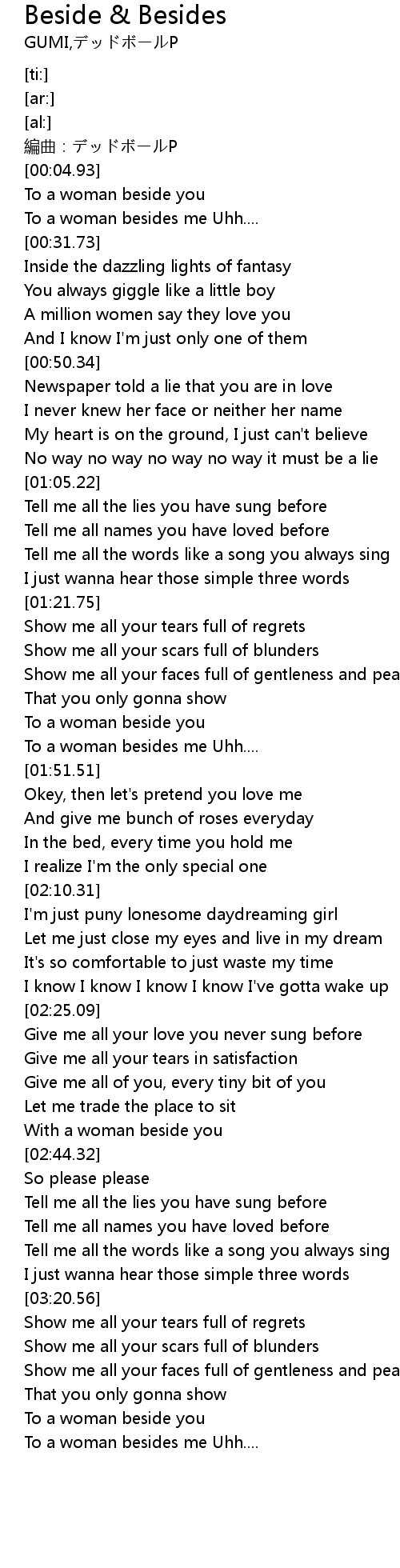 | [00:51.25] | Newspaper told a lie that you are in love |