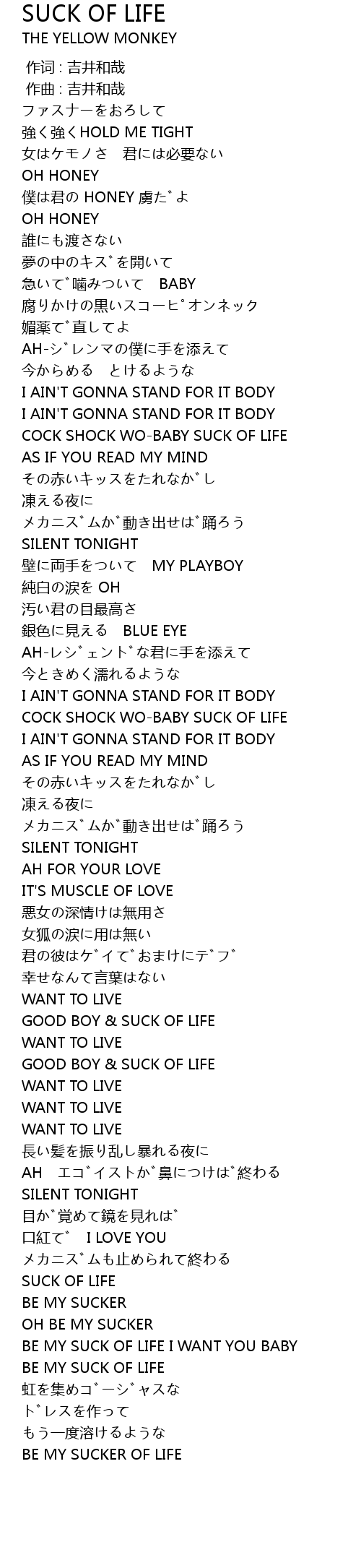 | [04:36.136] | BE MY SUCK OF LIFE I WANT YOU BABY |