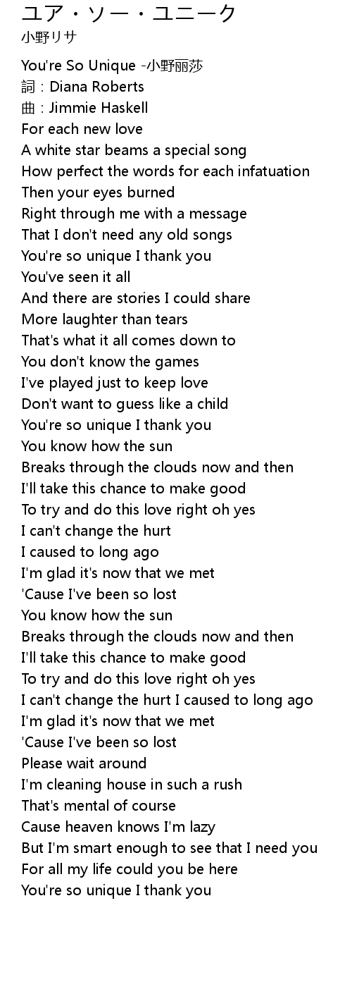 | [00:00.450] | You' re So Unique xiǎo yě lì shā |
