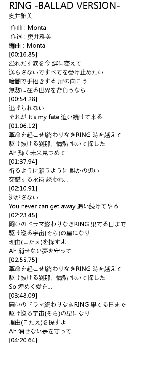 | [03:21.42] | 革命を起こせ!終わりなきRING 時を越えて |
