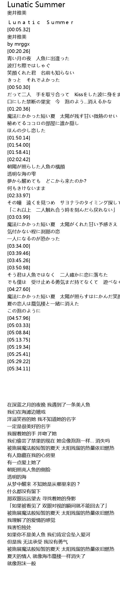| [04:29.50] | 魔法にかかった短い夏 太陽が照らすはにかんだ笑顔 |