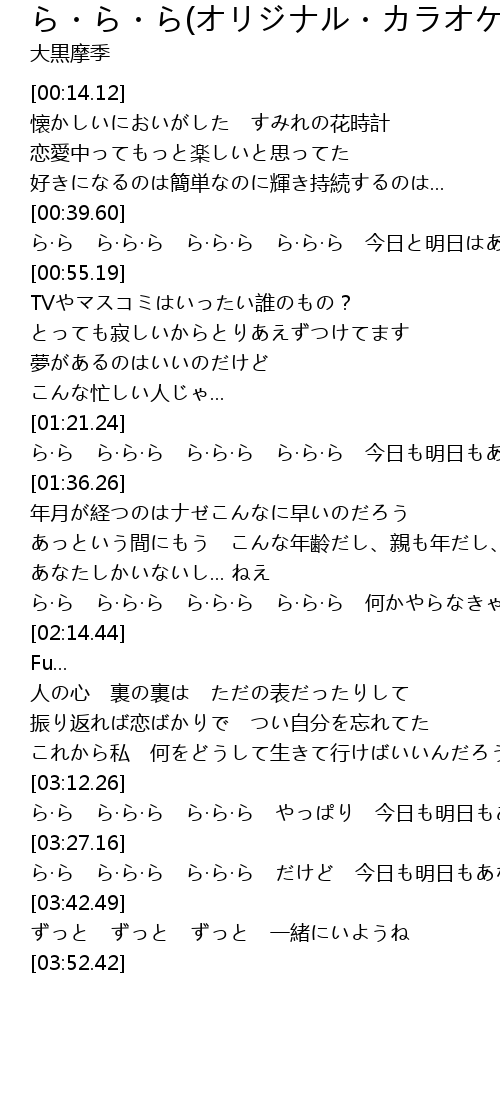 | [00:41.42] | ら·ら ら·ら·ら ら·ら·ら ら·ら·ら 今日と明日はあなたに逢えない |
