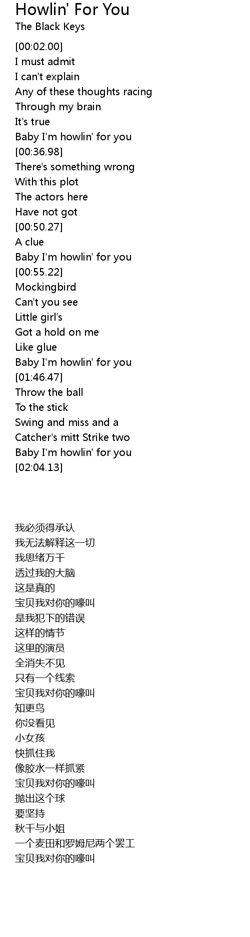 | [02:01.07] | 宝贝我对你的嚎叫 |