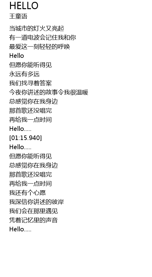 | [01:41.950] | 那首歌还没唱完 |