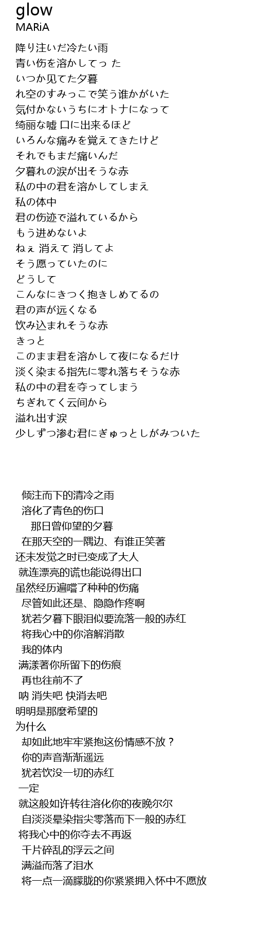 | [01:20.57] | 犹若夕暮下眼泪似要流落一般的赤红 |