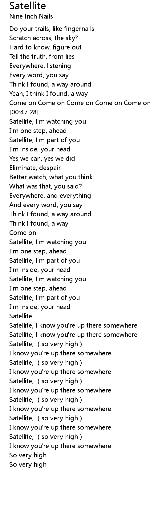 | [03:47.09] | Satellite, I know you're up there somewhere |
