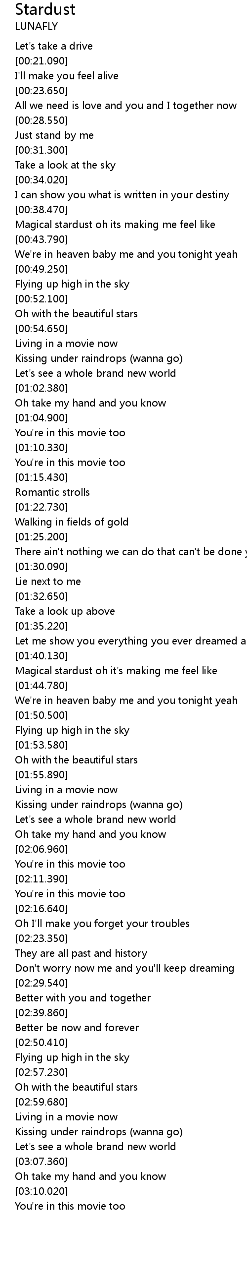 | [01:41.240] | Magical stardust oh it's making me feel like |