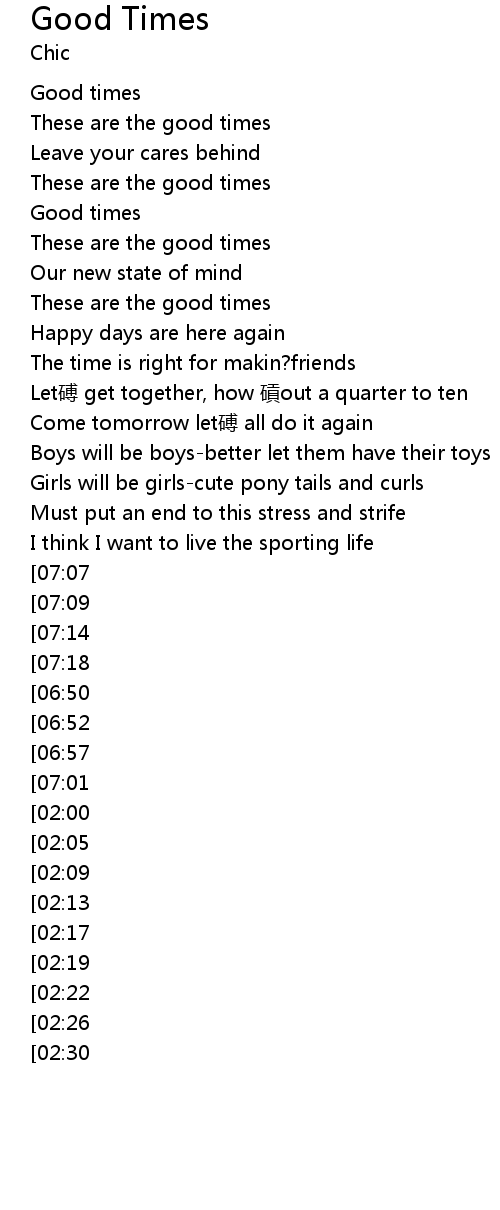 | 歌曲 | Good Times |