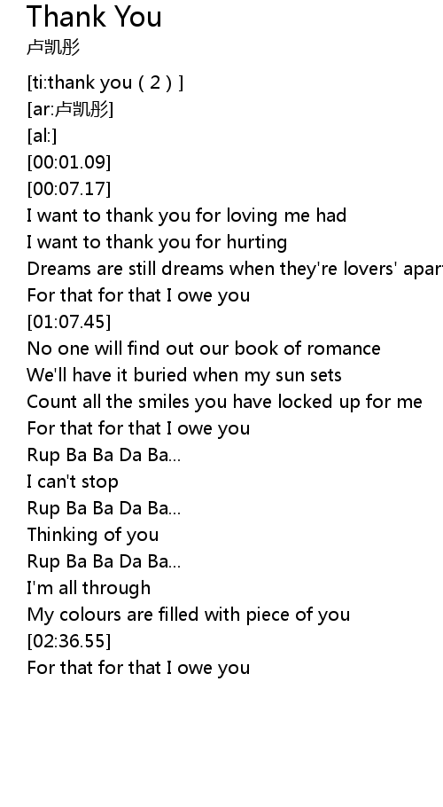 | [00:57.88] | For that for that I owe you |