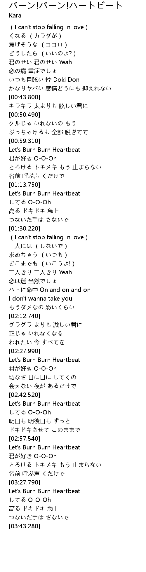 | [02:43.460] | Let's Burn Burn Heartbeat |