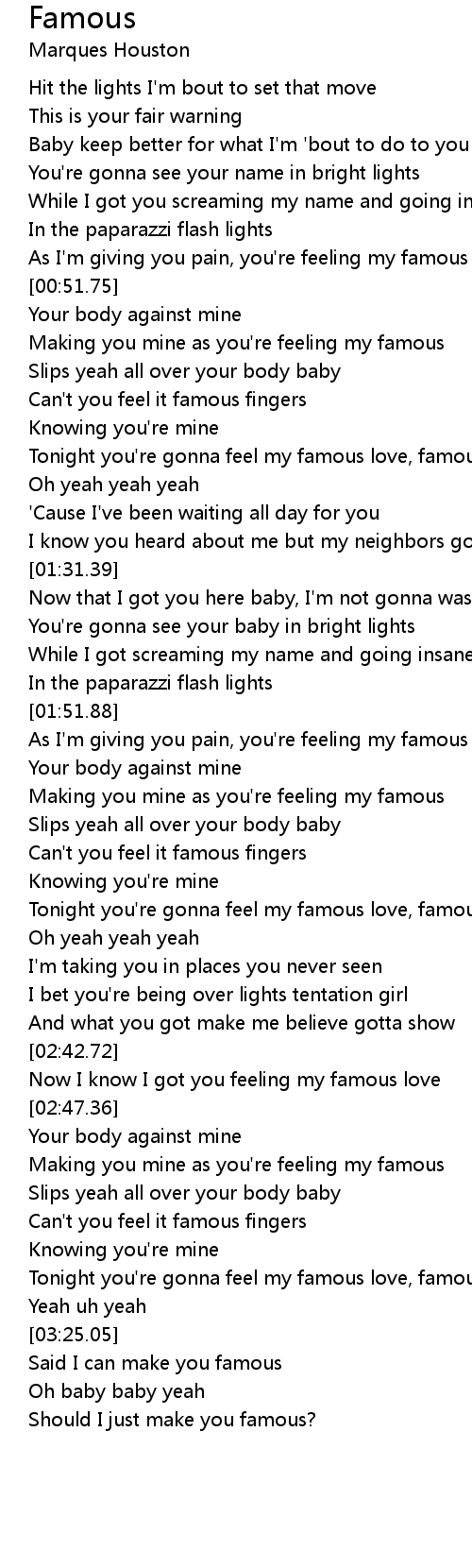 Tonight you're gonna feel my famous love, famous kiss, famous thing |