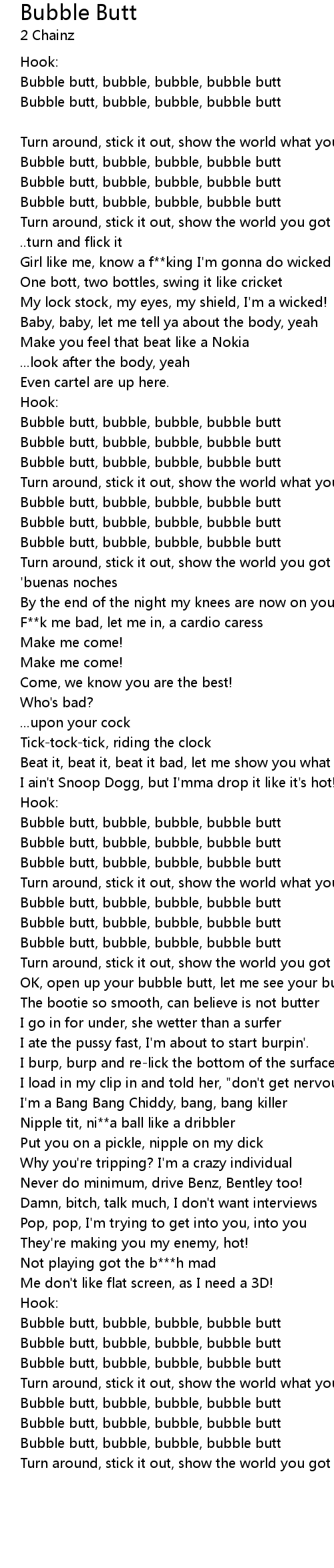 | Bubble butt, bubble, bubble, bubble butt | |