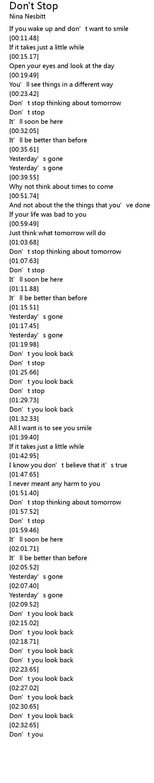 | [01:58.27] | Don' t stop |