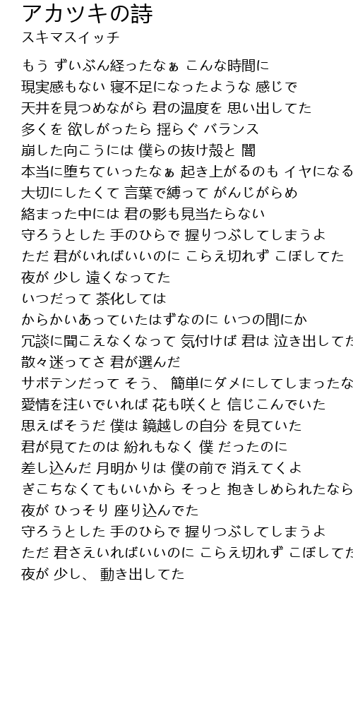 | 天井を見つめながら 君の温度を 思い出してた | |