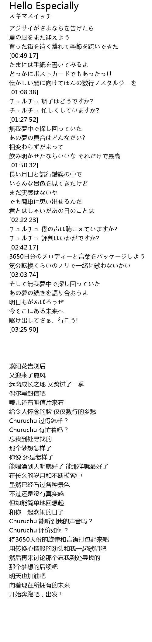 | [02:23.10] | チュルチュ 僕の声は聴こえていますか? |