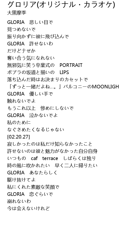 | [01:58.71] | GLORIA 泣かないでよ |