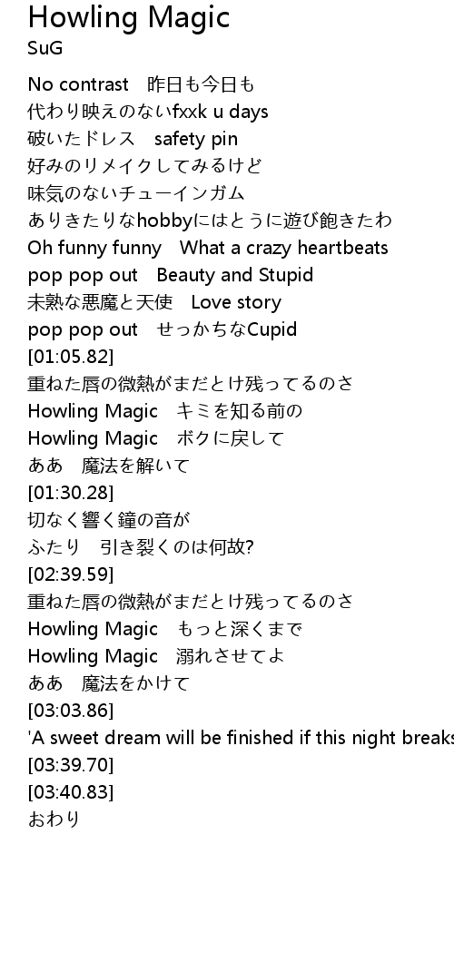 | [02:54.46] | Howling Magic 溺れさせてよ |