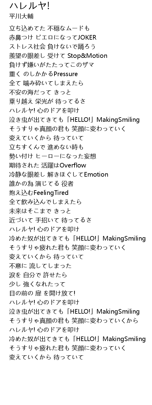 | [03:29.63] | 冷めた奴が出てきても「HELLO!」MakingSmiling |