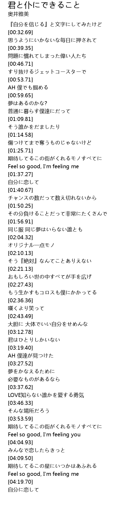 | [04:17.37] | Feel so good, I'm feeling me |