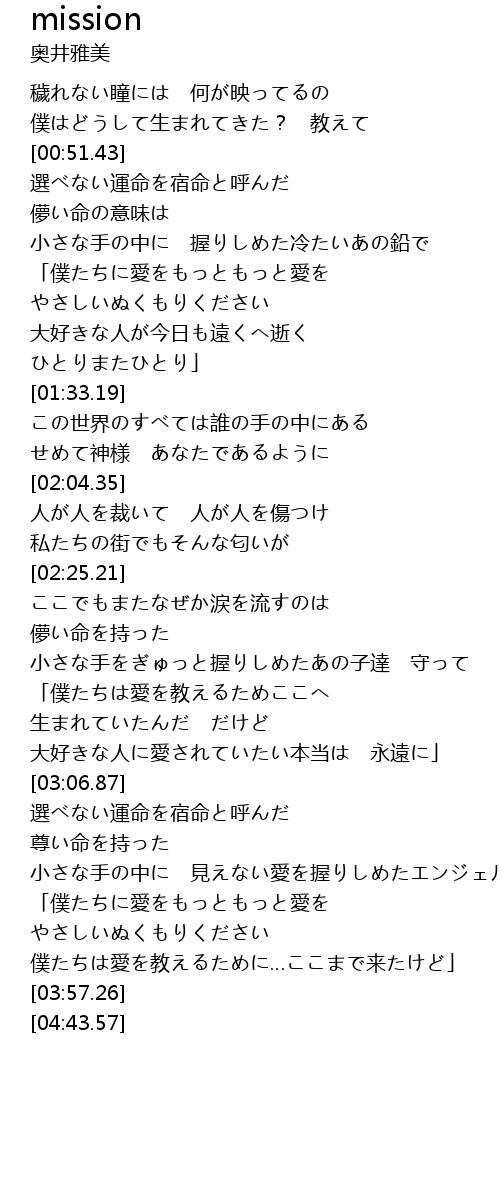 | [00:43.64] | 僕はどうして生まれてきた? 教えて |