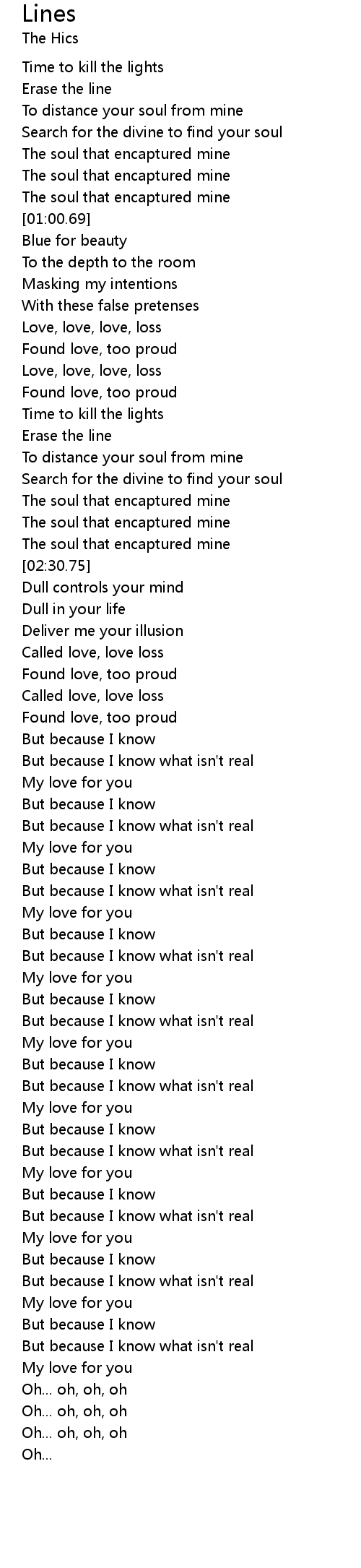 | [04:03.97] | But because I know what isn't real |