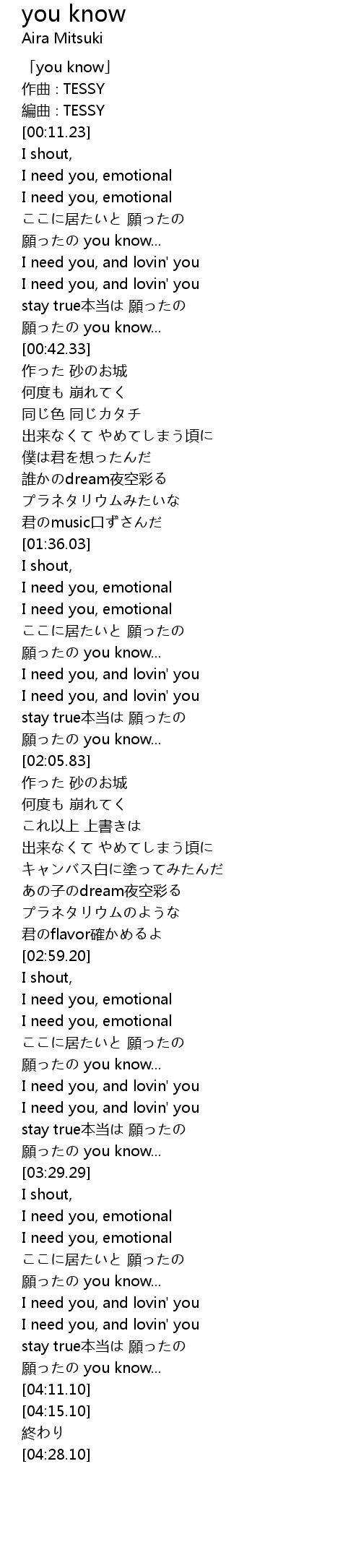 | [03:01.33] | I need you, emotional |