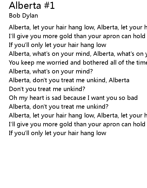 Alberta, let your hair hang low, Alberta, let your hair hang low |
