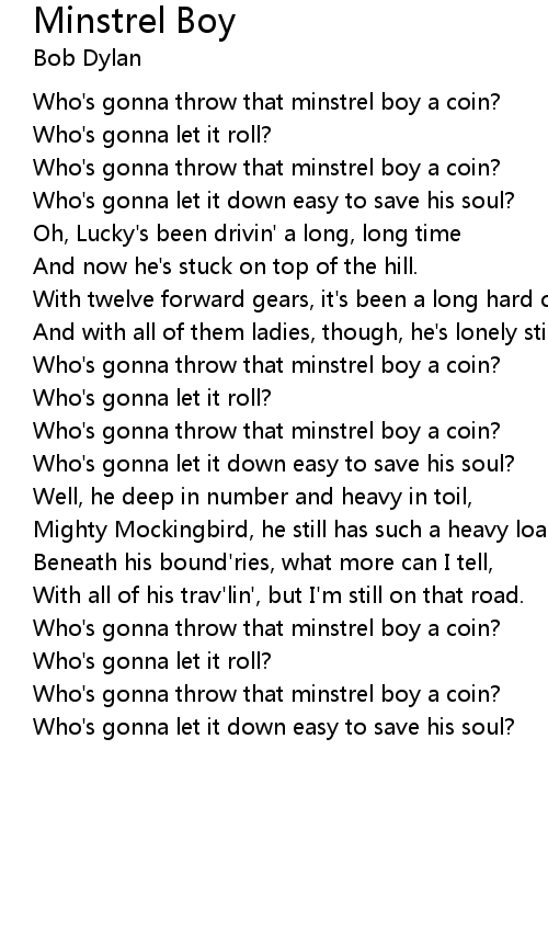 Who's gonna throw that minstrel boy a coin? |