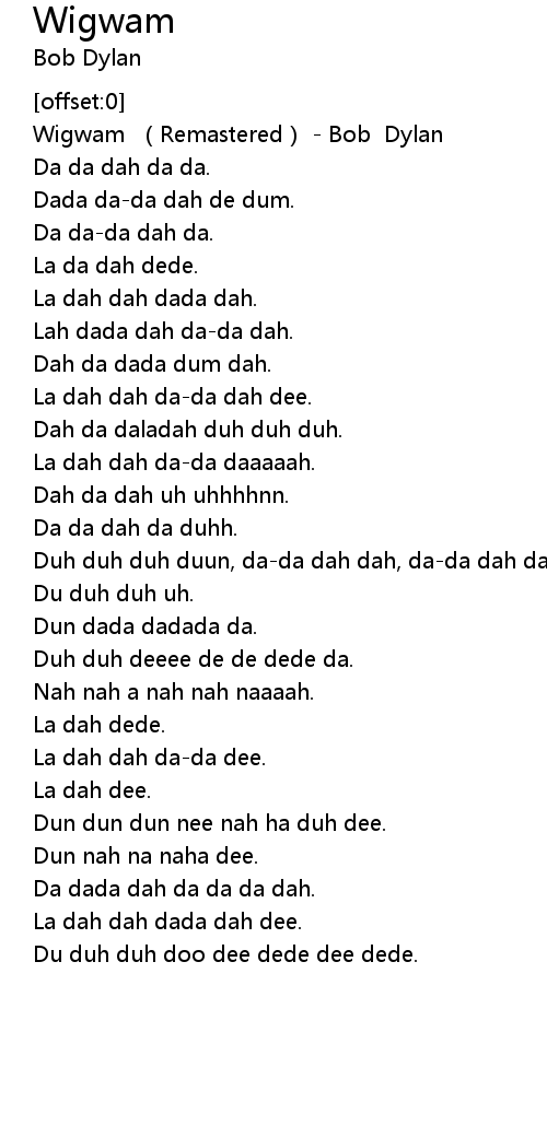 | [00:00.88] | Wigwam (Remastered) - Bob Dylan |