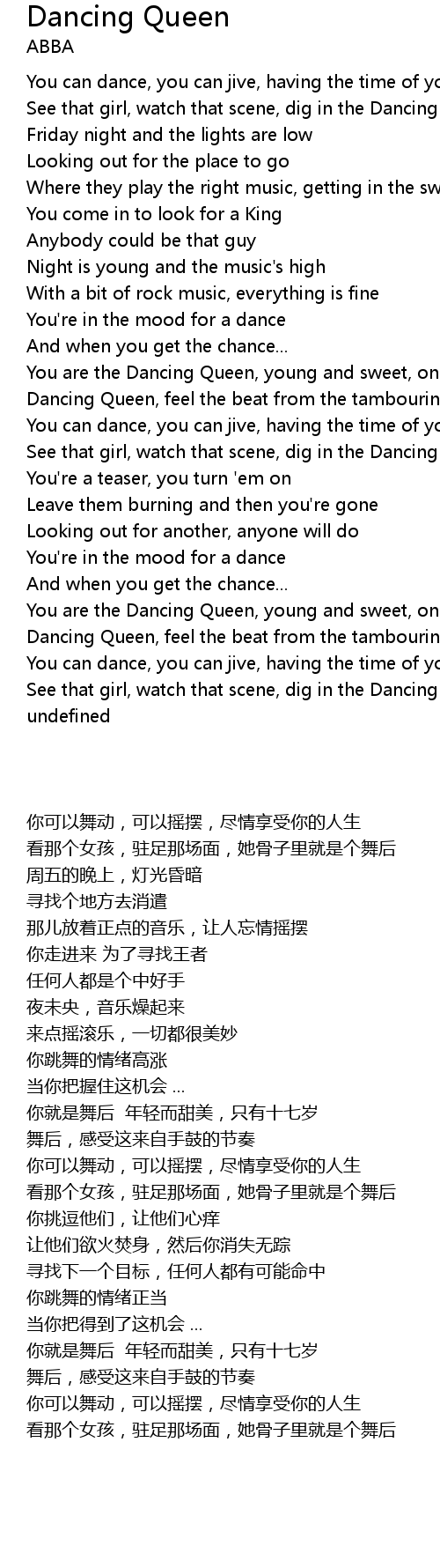 [01:26.00] You are the Dancing Queen, young and sweet, only seventeen
