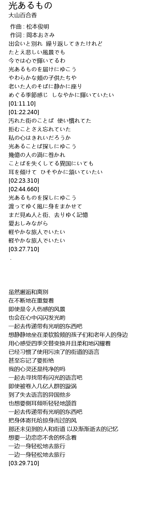 | [03:21.470] | 軽やかな旅人でいたい |