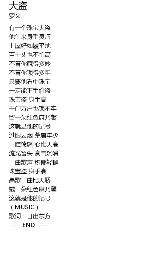 | [00:57.91] | 珠宝盗 身手高 |