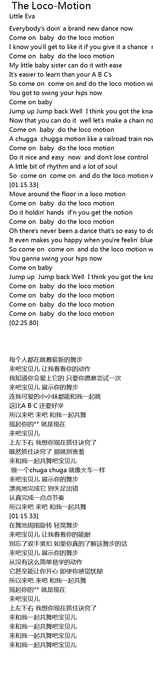 So come on come on and do the loco motion with me |