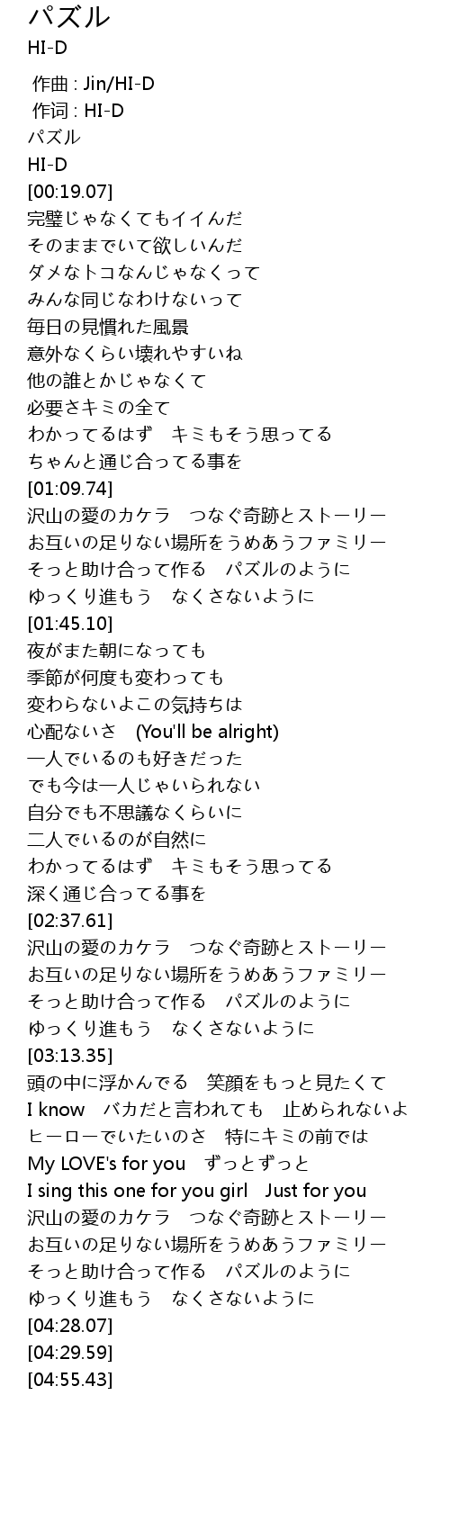 | [02:53.90] | そっと助け合って作る パズルのように |